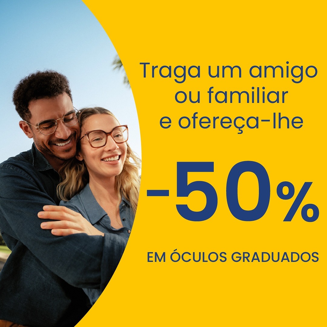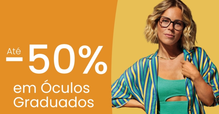 Ate 30 de setembro, pode aproveitar a campanha de 50% de desconto em óculos graduados. E caso subscreva a newsletter, recebe um desconto de 10% na próxima compra online.
